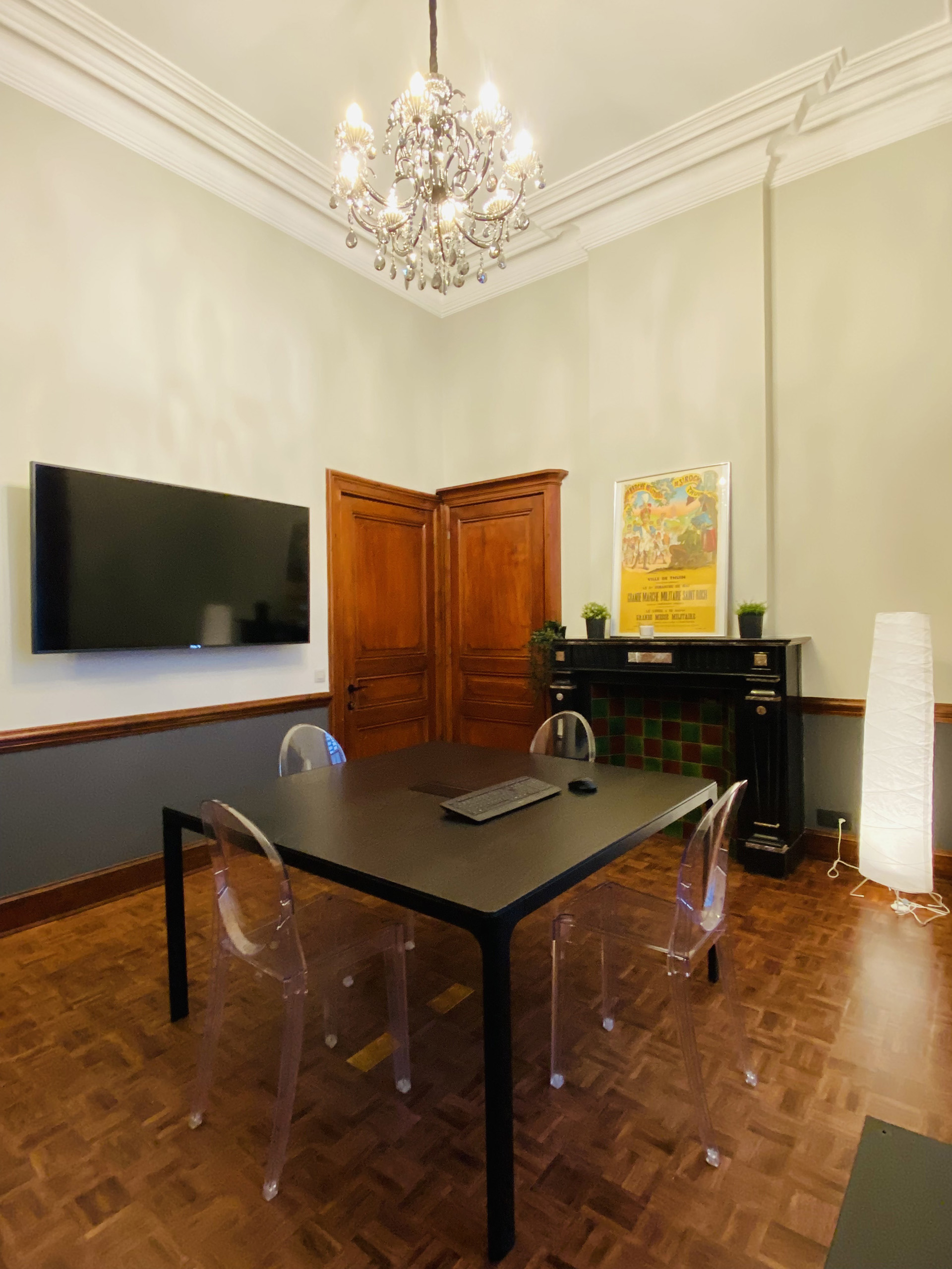 Idéale pour vos réunions ou visioconférences, notre salle offre un cadre chaleureux et professionnel, conçu pour favoriser la productivité et le confort. Entièrement équipée avec tout le matériel nécessaire (écran, vidéoprojecteur, connexions haut débit, tableau blanc…), elle répond à tous vos besoins techniques.